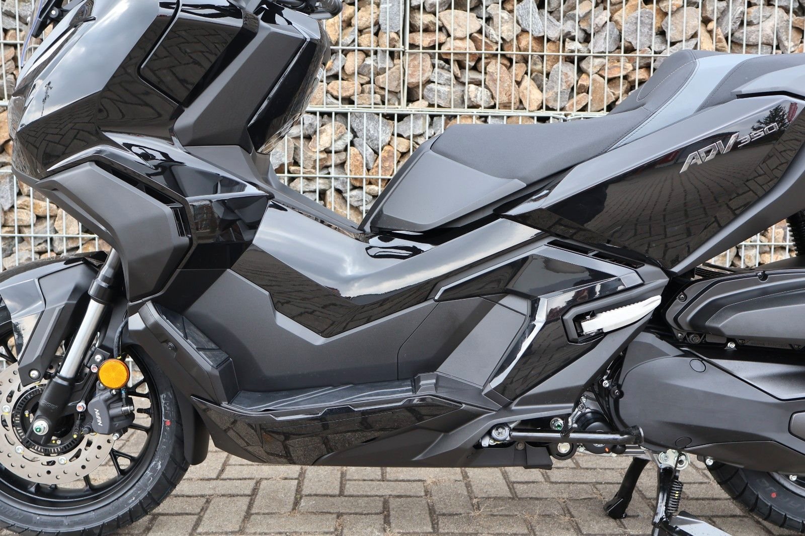 Zuversicht. Fühle es, wenn du den ADV350 Scooter fährst. Sportliche Motorleistung trifft auf ein robustes, leichtgängiges Fahrwerk und eine neue Hinterradaufhängung für mehr Komfort, um das Gelände mit Leichtigkeit zu bewältigen. Mit der automatischen Blinkerabschaltung ist der ADV350 nicht nur sicher, sondern auch funktional. Es geht aber nicht nur um Muskeln. Mit dem außerordentlich übersichtlichen 5-Zoll TFT-Cockpit hast du während der Fahrt stets alles im Blick und dank Honda RoadSync-Integration jederzeit Zugriff auf Telefonanrufe, Musik und Navigation. Der ADV350. Auf diesen Roller kannst du dich verlassen.