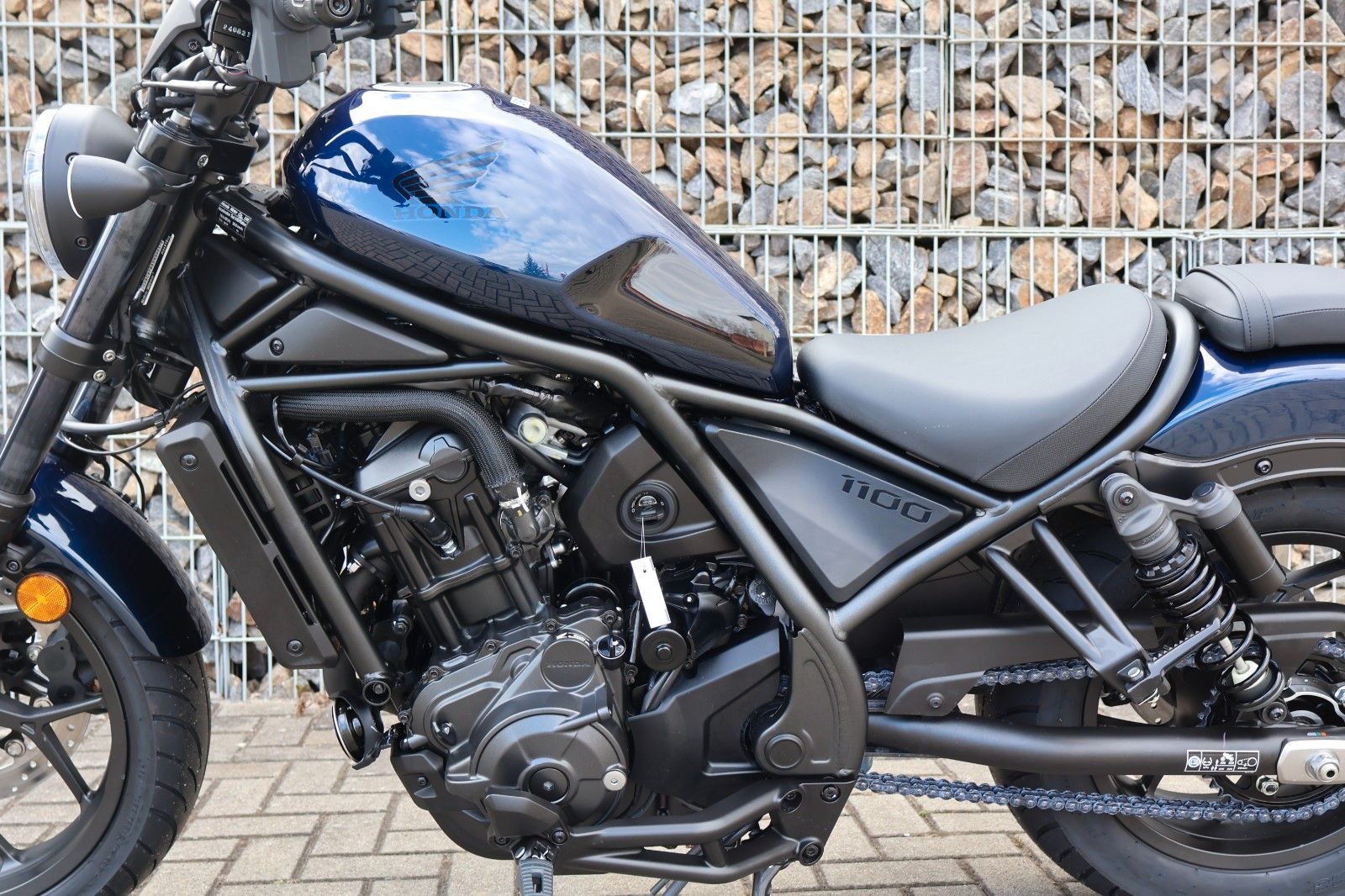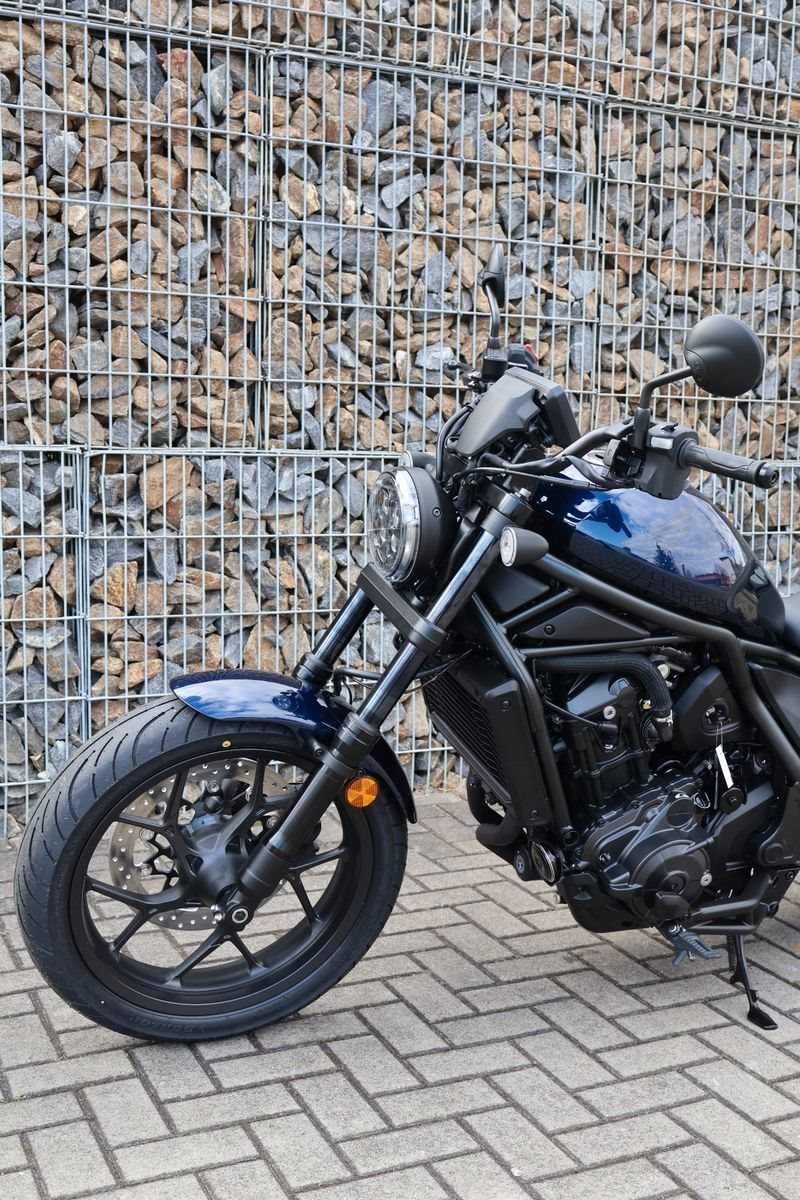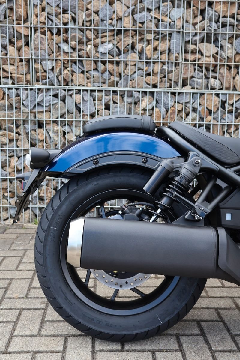 Die Sitzhöhe von 710 mm gewährleistet perfektes Handling bei niedrigen Geschwindigkeiten und eine gute Erreichbarkeit des Bodens. Und die Details sind einfach unschlagbar. Der Kraftstofftank fasst 13,6 Liter und sitzt ohne Flansch über dem kraftvollen Motor. Die vorderen und hinteren Schutzbleche sind aus 1 mm dickem Stahl gefertigt und auf Aluminiumdruckguss montiert. Der runde Scheinwerfer ist ein echter Motorradklassiker und zugleich modern: Die vier hellen LED-Leuchten tragen zum unverwechselbaren Styling der Rebel ebenso bei wie die LED-Blinker und das Rücklicht mit Klarlinse. Dank ihrer fein abgestimmten Proportionen sieht die CMX1100 auch mit Fahrer gut aus - das ist schließlich wichtig.