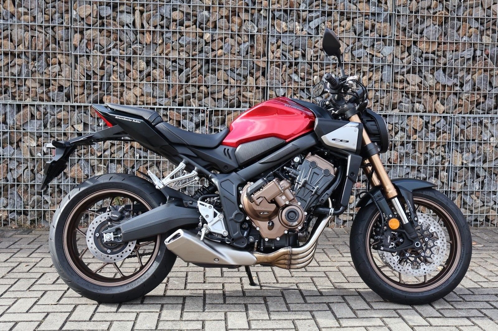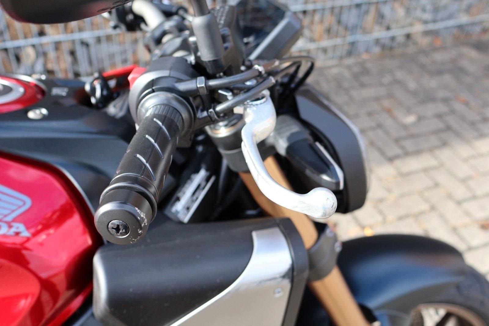 Du hast es in der Hand. Der DOHC-Vierzylinder-Reihenmotor leistet in der Spitze 70 kW (95,2 PS) - der rote Bereich beginnt bei 12.000 U/min - und bietet ein Drehmoment von 63 Nm. Honda Händler können das Bike für alle mit A2-Führerschein auf 35 kW drosseln und die Drosselung entfernen, sobald ein A-Führerschein vorgelegt werden kann. Da Leistung Kontrolle braucht, verhindert die Anti-Hopping-Kupplung das Blockieren des Hinterrads bei starkem Bremsen und Herunterschalten. Das Notbremssignal (ESS) wird bei Vollbremsungen aktiviert und sorgt so für bessere Sichtbarkeit auf der Straße.