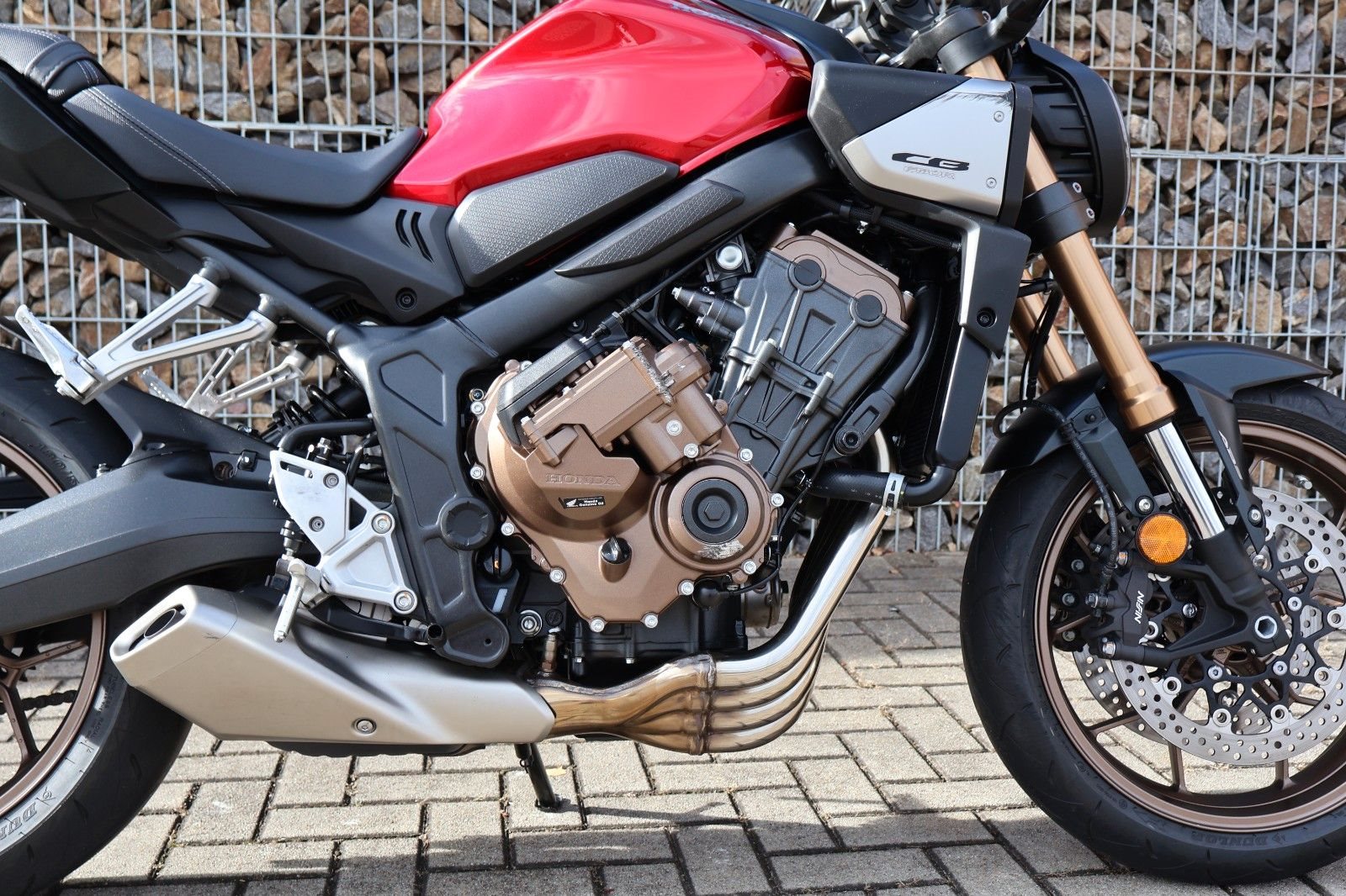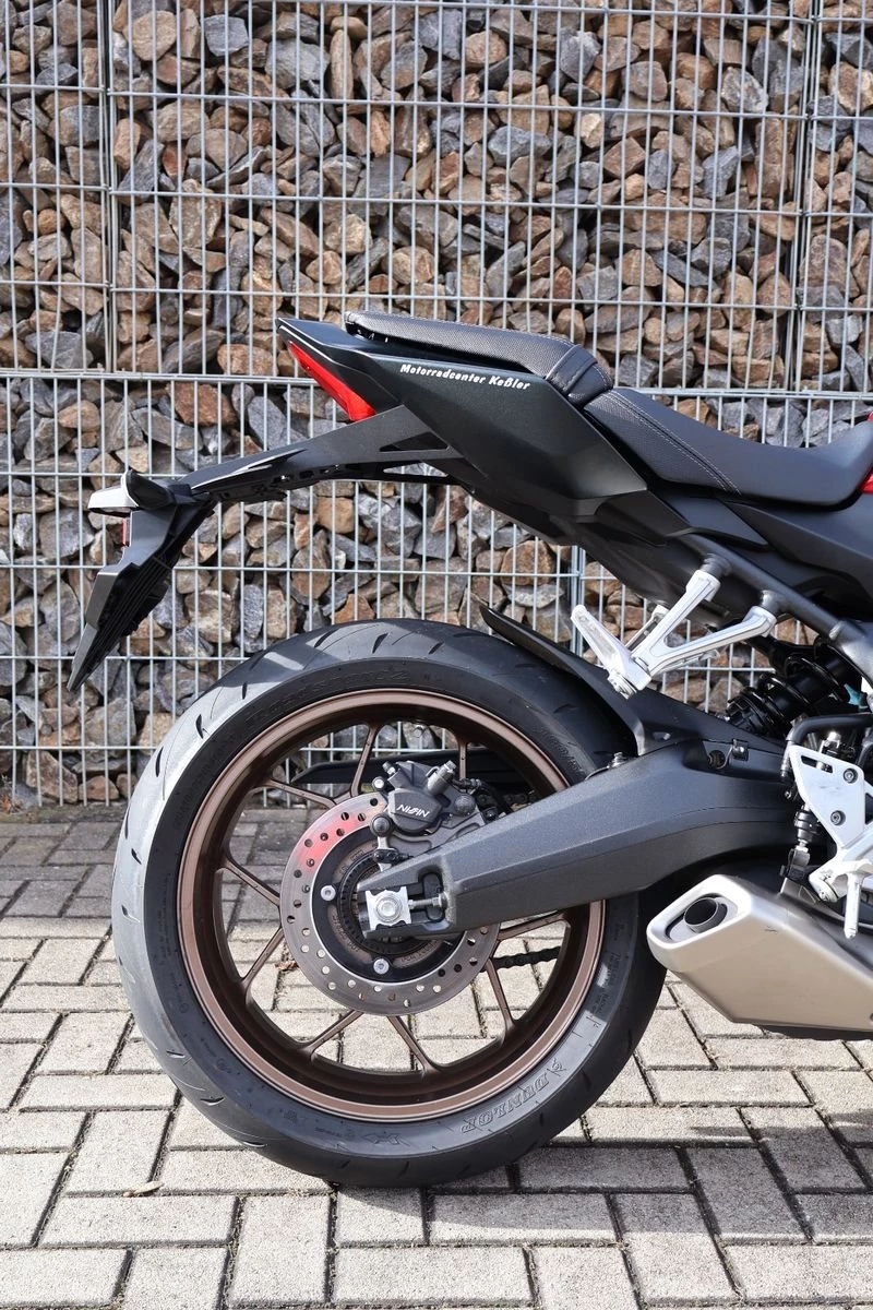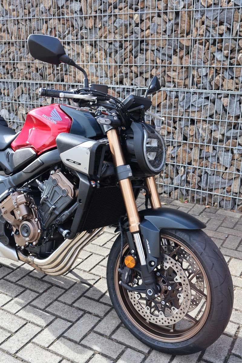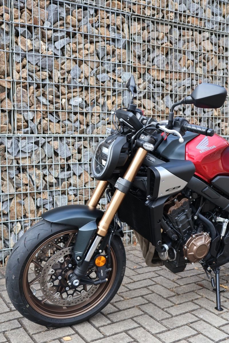 Du hast es in der Hand. Der DOHC-Vierzylinder-Reihenmotor leistet in der Spitze 70 kW (95,2 PS) - der rote Bereich beginnt bei 12.000 U/min - und bietet ein Drehmoment von 63 Nm. Honda Händler können das Bike für alle mit A2-Führerschein auf 35 kW drosseln und die Drosselung entfernen, sobald ein A-Führerschein vorgelegt werden kann. Da Leistung Kontrolle braucht, verhindert die Anti-Hopping-Kupplung das Blockieren des Hinterrads bei starkem Bremsen und Herunterschalten. Das Notbremssignal (ESS) wird bei Vollbremsungen aktiviert und sorgt so für bessere Sichtbarkeit auf der Straße.