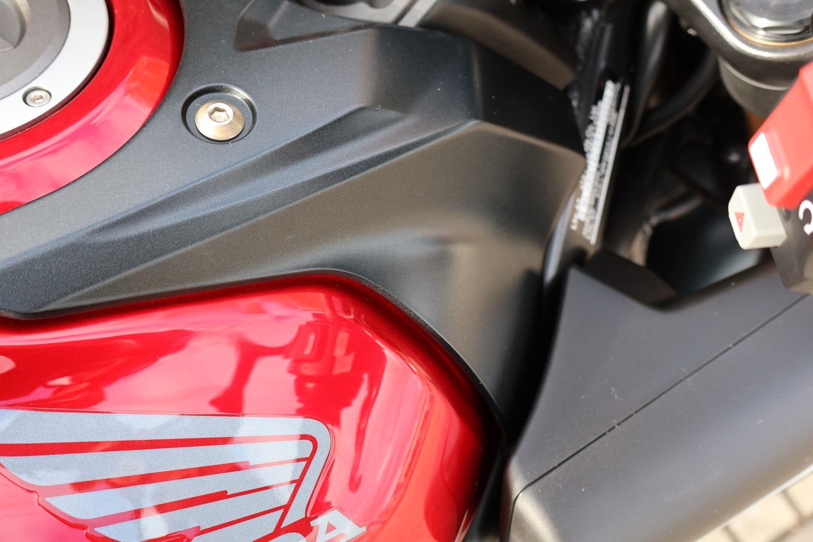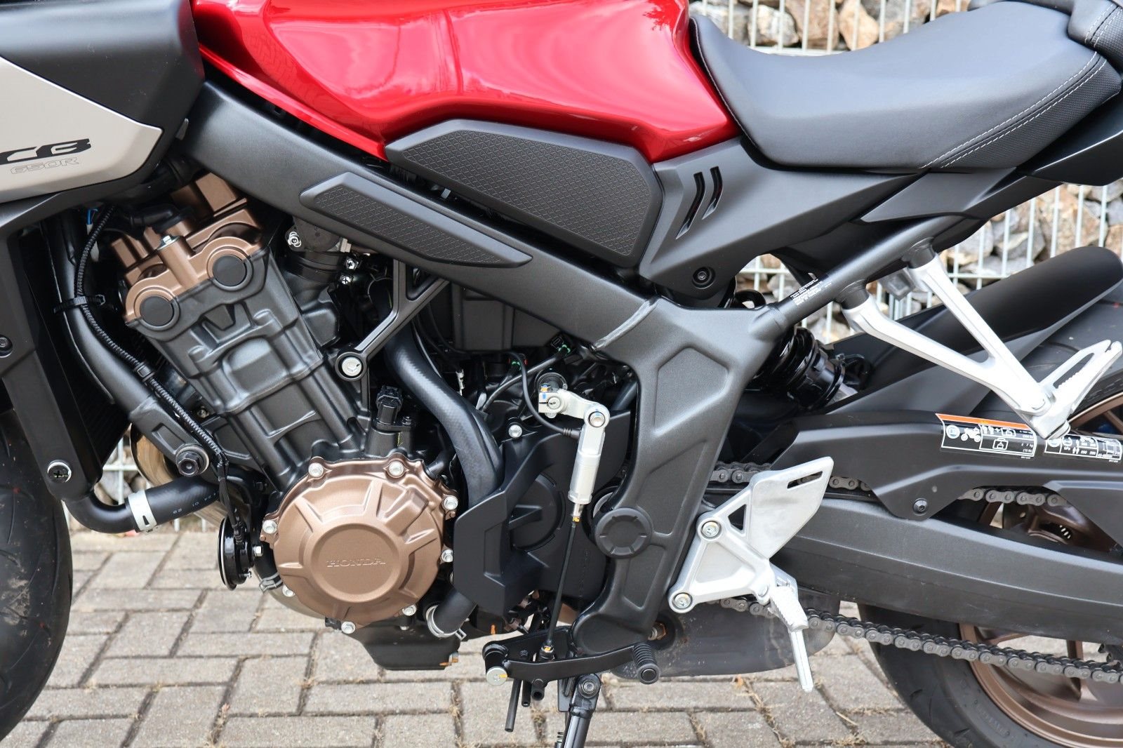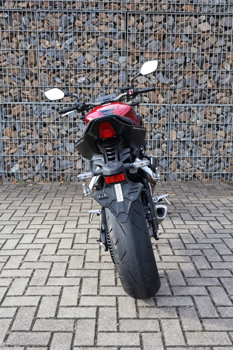 Du hast es in der Hand. Der DOHC-Vierzylinder-Reihenmotor leistet in der Spitze 70 kW (95,2 PS) - der rote Bereich beginnt bei 12.000 U/min - und bietet ein Drehmoment von 63 Nm. Honda Händler können das Bike für alle mit A2-Führerschein auf 35 kW drosseln und die Drosselung entfernen, sobald ein A-Führerschein vorgelegt werden kann. Da Leistung Kontrolle braucht, verhindert die Anti-Hopping-Kupplung das Blockieren des Hinterrads bei starkem Bremsen und Herunterschalten. Das Notbremssignal (ESS) wird bei Vollbremsungen aktiviert und sorgt so für bessere Sichtbarkeit auf der Straße.