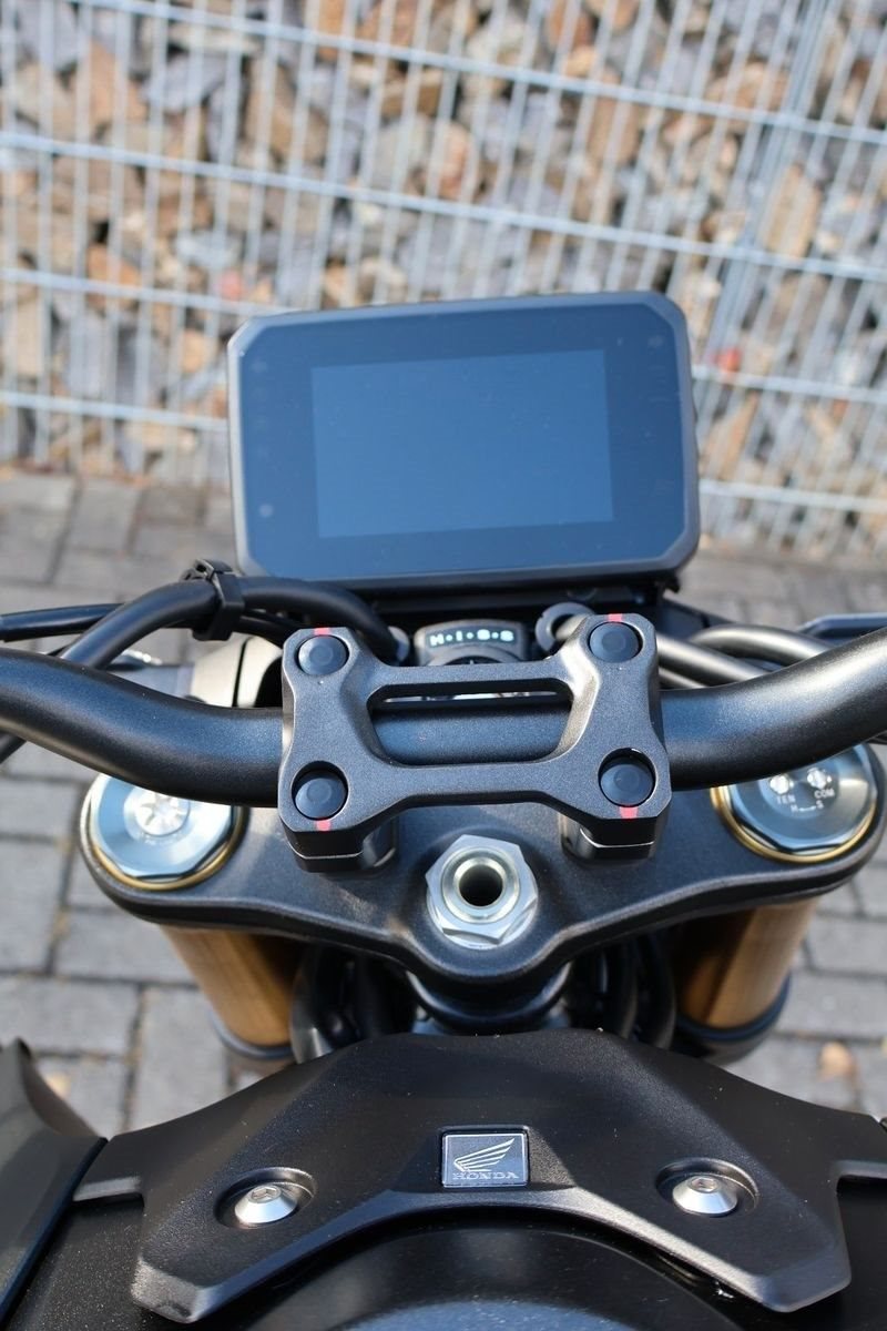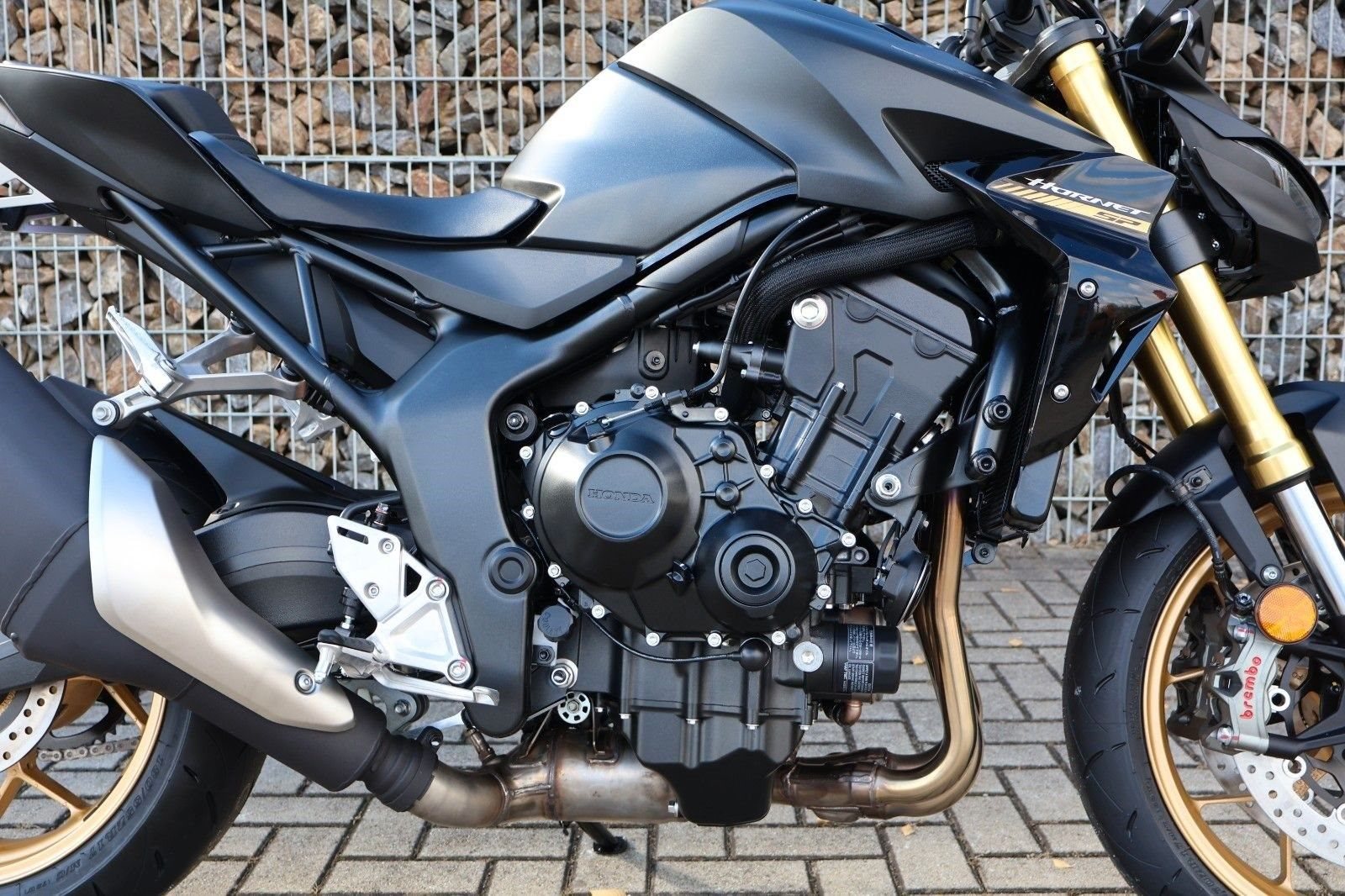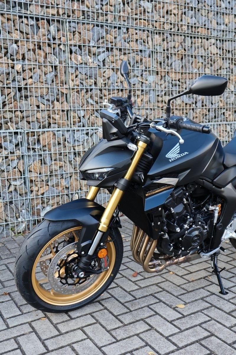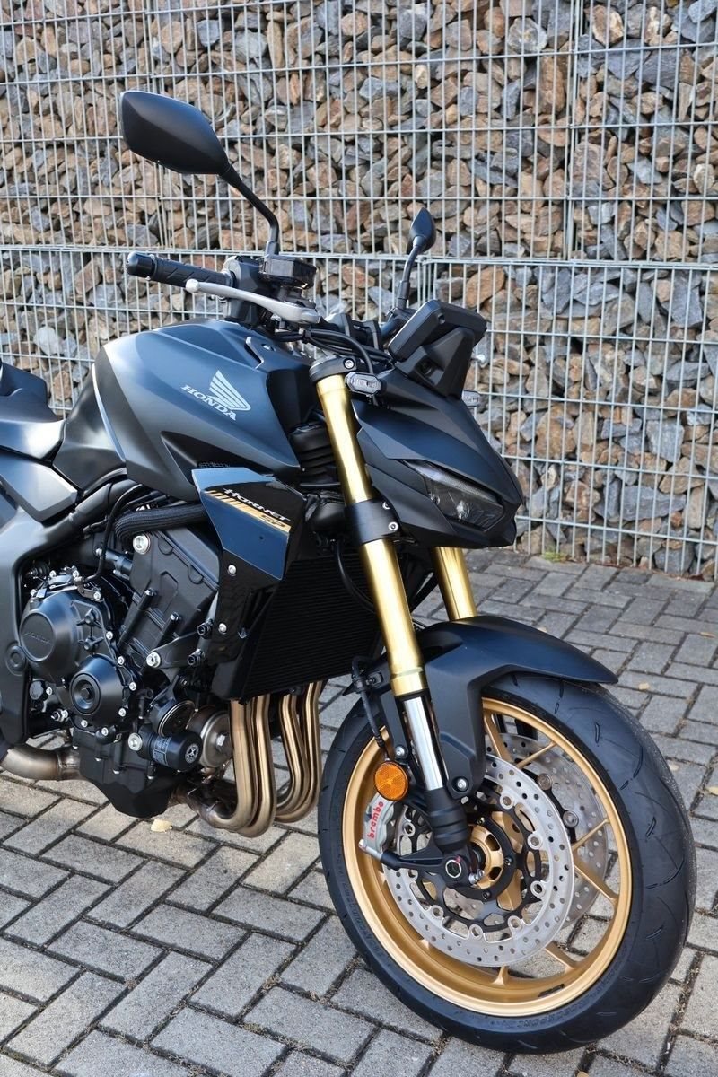 Es hat einen unglaublichen Motor. Und das Äußere einer waschechten Streetfighter-Maschine. Die CB1000 Hornet bietet jedoch auch ein einzigartiges Handling. Vom Großstadtdschungel zur kurvenreichen Landstraße. Der einteilige Stahl-Brückenrahmen verlagert aufgrund seiner Geometrie das Gewicht nach vorn auf das Vorderrad und erhöht die Torsionssteifigkeit um 70 %, was für einen agilen Kurveneingang und ein dynamisches Lenkverhalten sorgt. Außerdem ist ein Showa-Federbein montiert, das über Pro-Link für perfekte Federungskontrolle sorgt. Dazu kommt die Lenkpräzision der einstellbaren SHOWA SFF-BP Upside-Down-Gabel mit 41 mm Durchmesser. Die radial montierten Vielkolbenbremszangen von Brembo an der Vorderradbremse mit 310 mm großen, schwimmend gelagerten Bremsscheiben sorgen für eine starke Bremsleistung. Dank des breiten Lenkers und der Fahrposition verschmilzt du mit dem Motorrad.