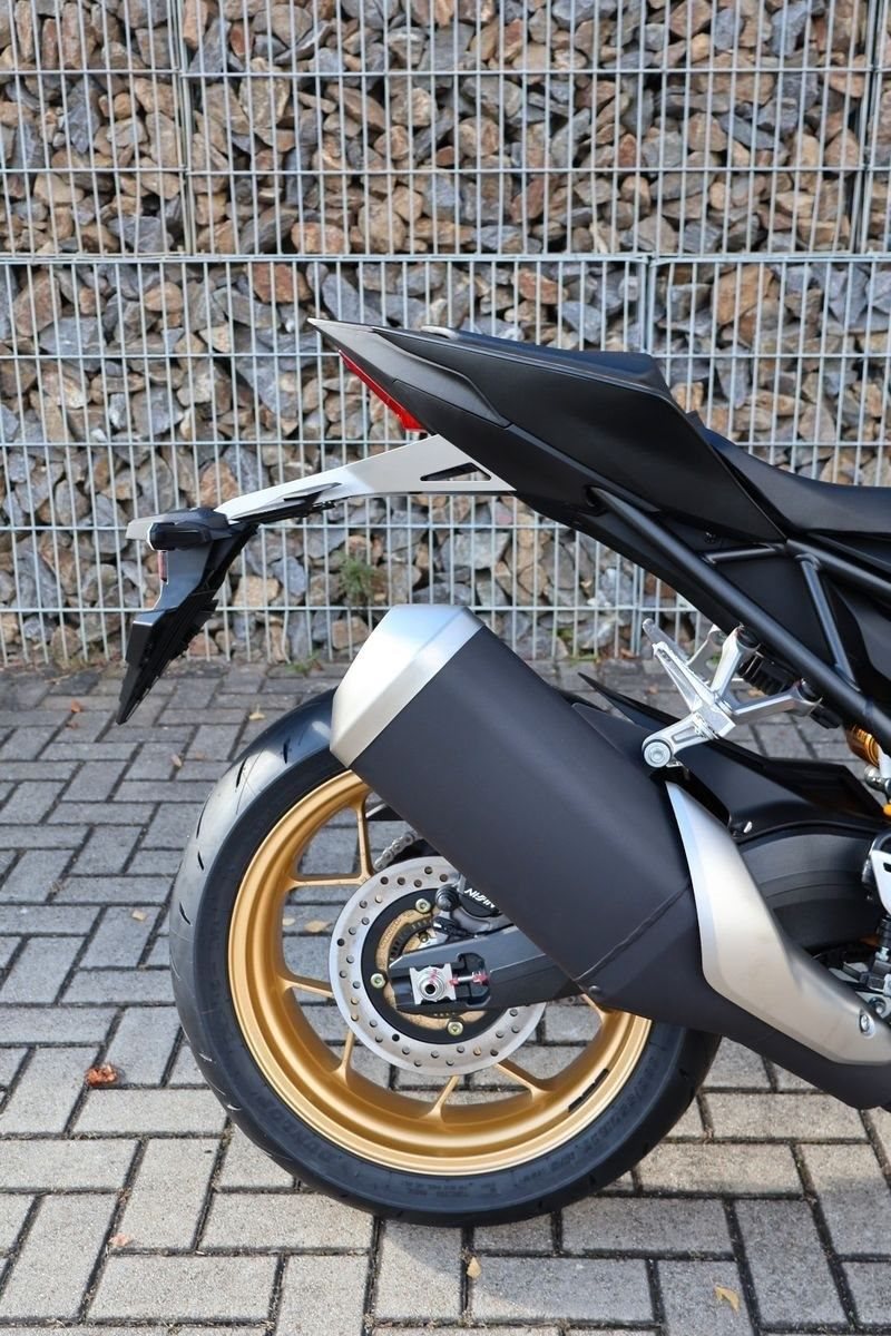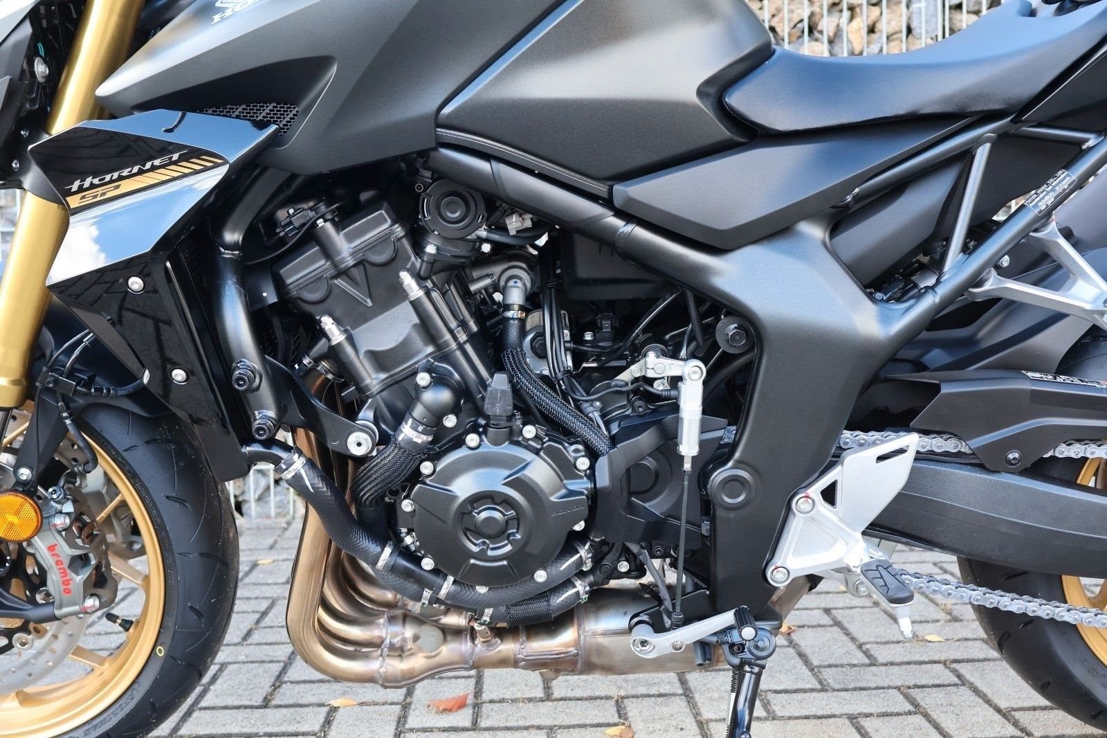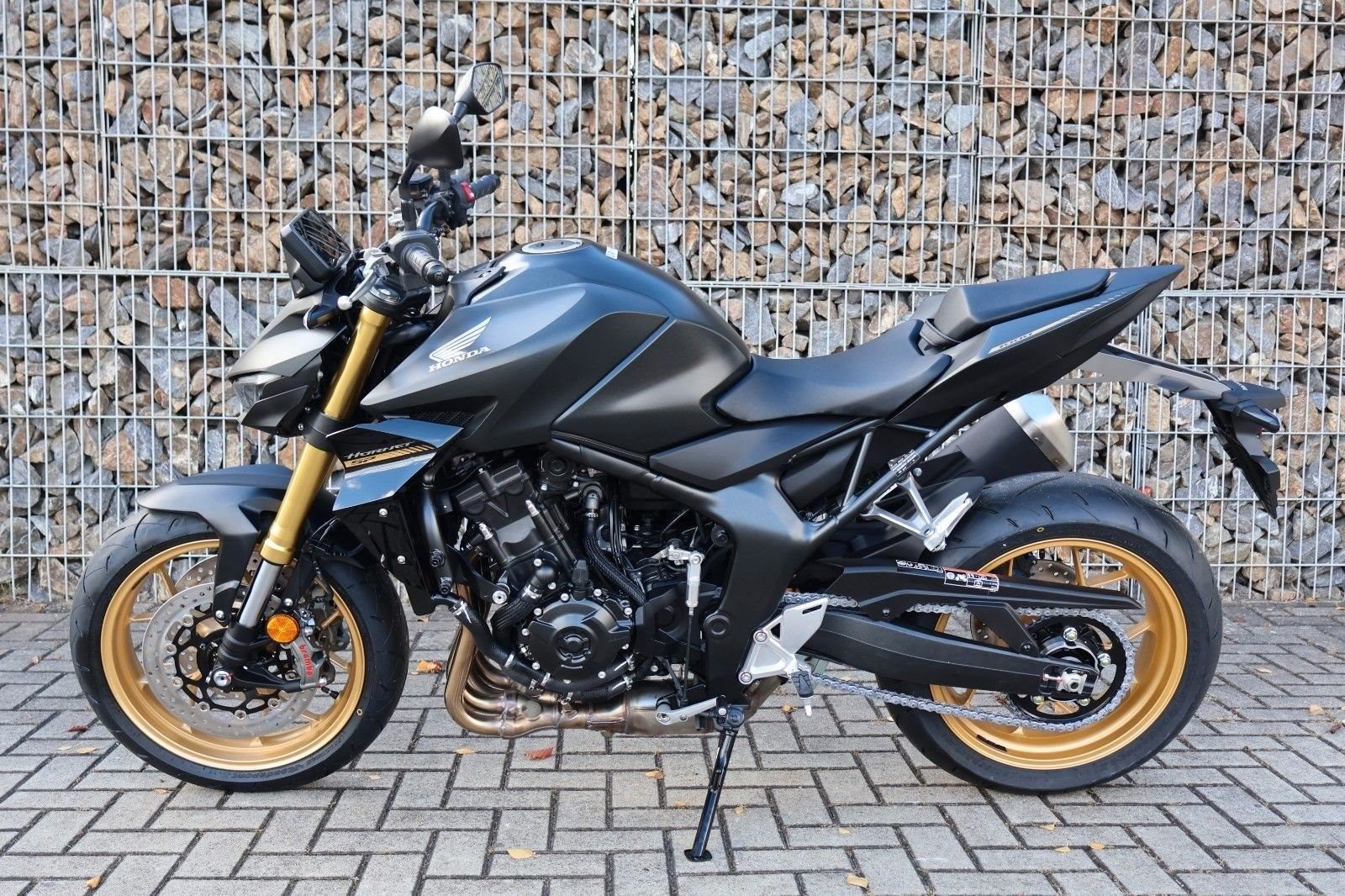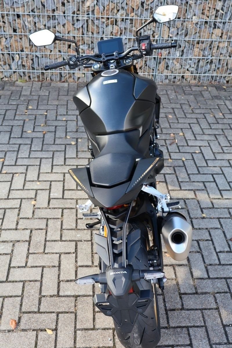 Es hat einen unglaublichen Motor. Und das Äußere einer waschechten Streetfighter-Maschine. Die CB1000 Hornet bietet jedoch auch ein einzigartiges Handling. Vom Großstadtdschungel zur kurvenreichen Landstraße. Der einteilige Stahl-Brückenrahmen verlagert aufgrund seiner Geometrie das Gewicht nach vorn auf das Vorderrad und erhöht die Torsionssteifigkeit um 70 %, was für einen agilen Kurveneingang und ein dynamisches Lenkverhalten sorgt. Außerdem ist ein Showa-Federbein montiert, das über Pro-Link für perfekte Federungskontrolle sorgt. Dazu kommt die Lenkpräzision der einstellbaren SHOWA SFF-BP Upside-Down-Gabel mit 41 mm Durchmesser. Die radial montierten Vielkolbenbremszangen von Brembo an der Vorderradbremse mit 310 mm großen, schwimmend gelagerten Bremsscheiben sorgen für eine starke Bremsleistung. Dank des breiten Lenkers und der Fahrposition verschmilzt du mit dem Motorrad.