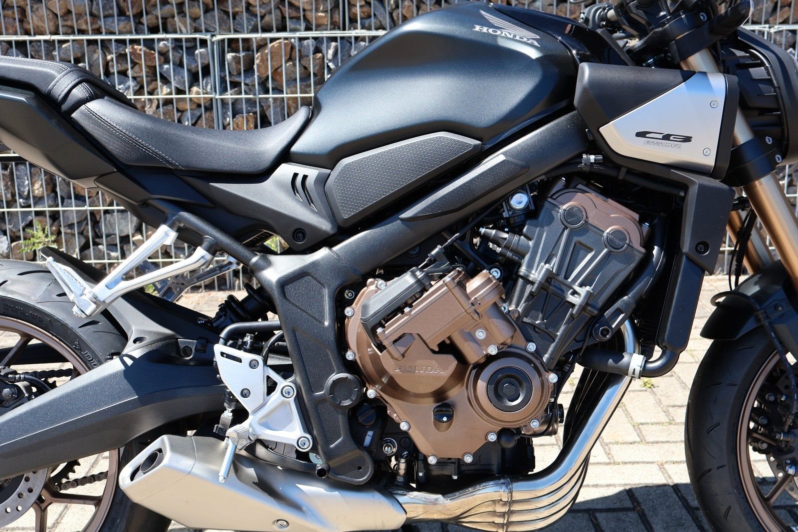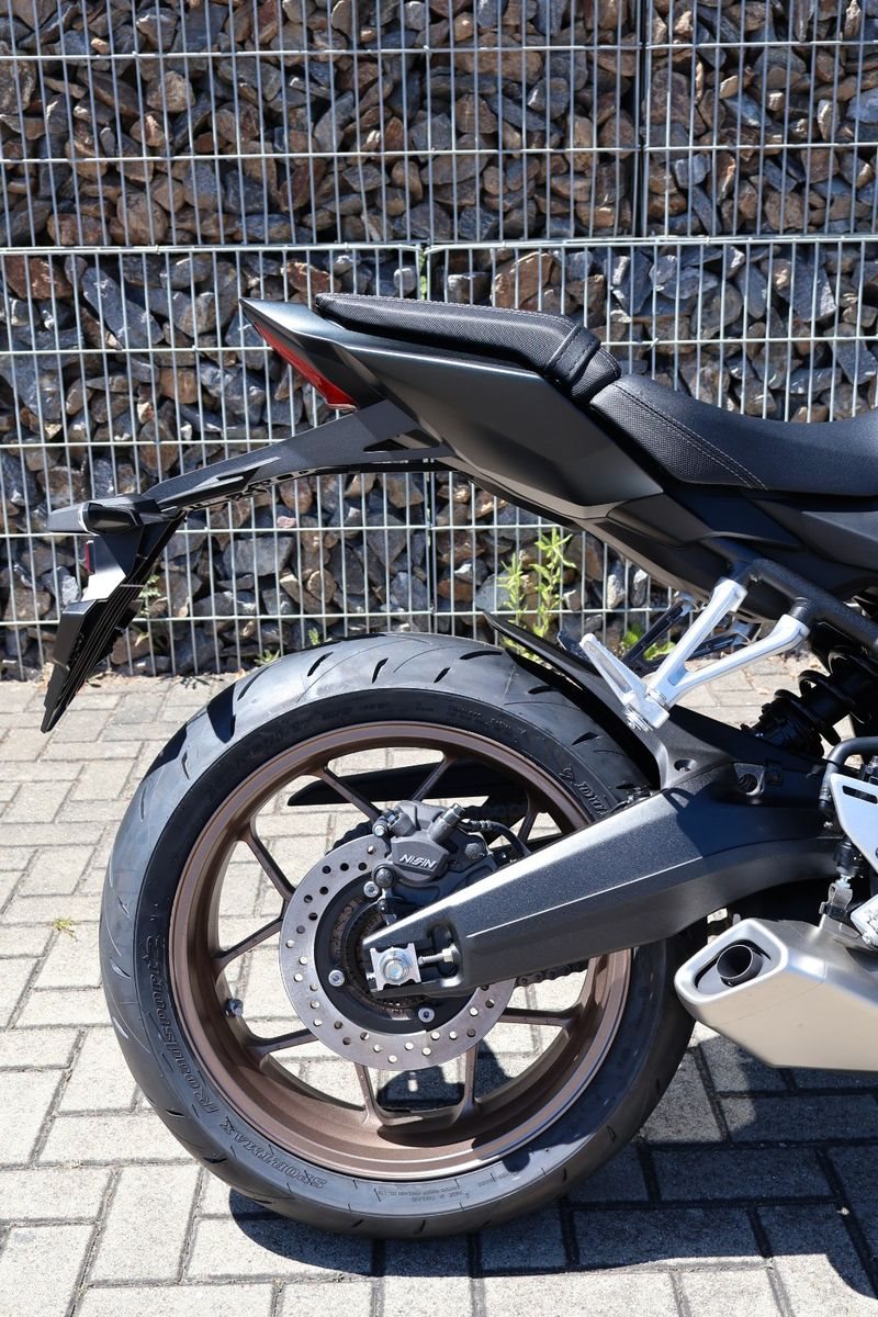 Du hast es in der Hand. Der DOHC-Vierzylinder-Reihenmotor leistet in der Spitze 70 kW (95,2 PS) - der rote Bereich beginnt bei 12.000 U/min - und bietet ein Drehmoment von 63 Nm. Honda Händler können das Bike für alle mit A2-Führerschein auf 35 kW drosseln und die Drosselung entfernen, sobald ein A-Führerschein vorgelegt werden kann. Da Leistung Kontrolle braucht, verhindert die Anti-Hopping-Kupplung das Blockieren des Hinterrads bei starkem Bremsen und Herunterschalten. Das Notbremssignal (ESS) wird bei Vollbremsungen aktiviert und sorgt so für bessere Sichtbarkeit auf der Straße.