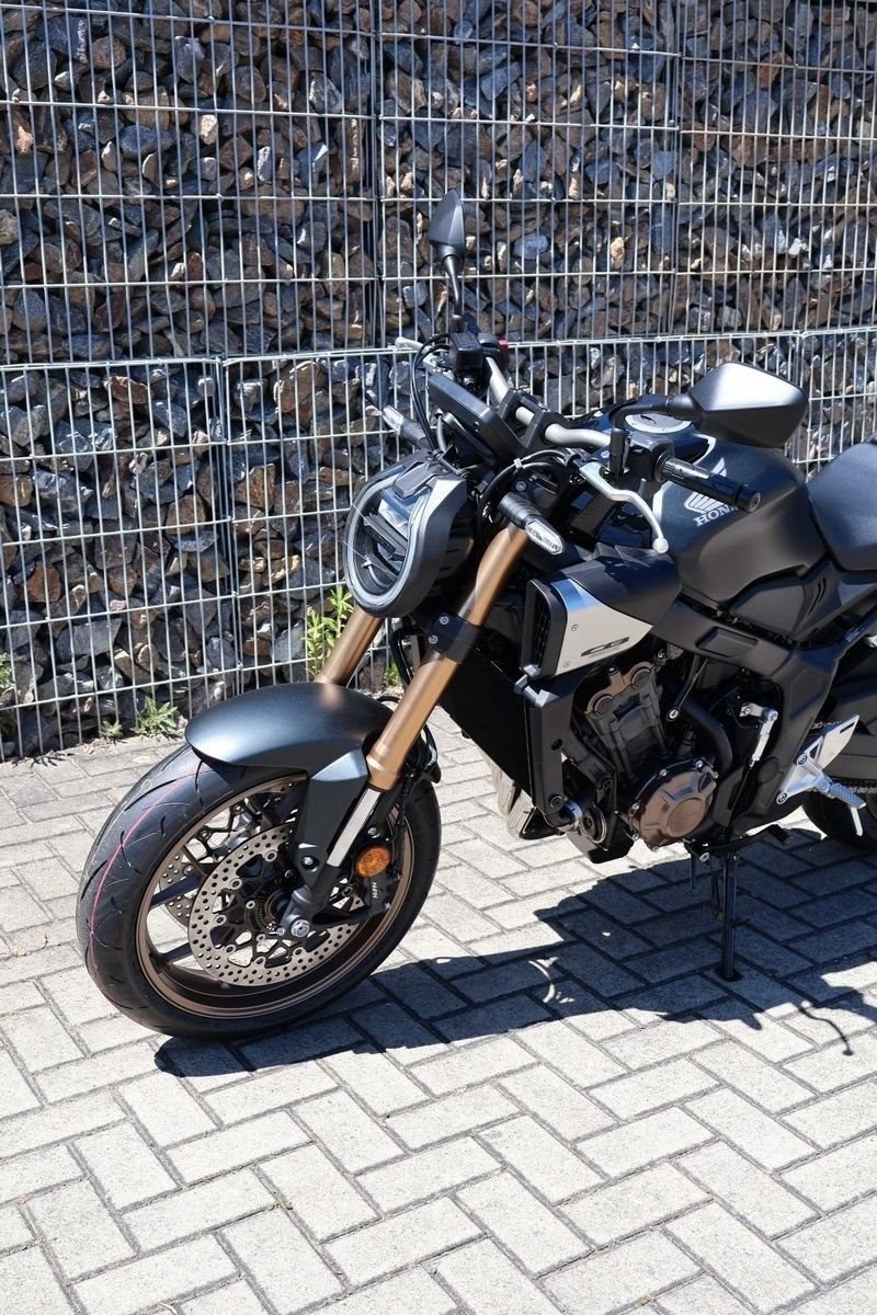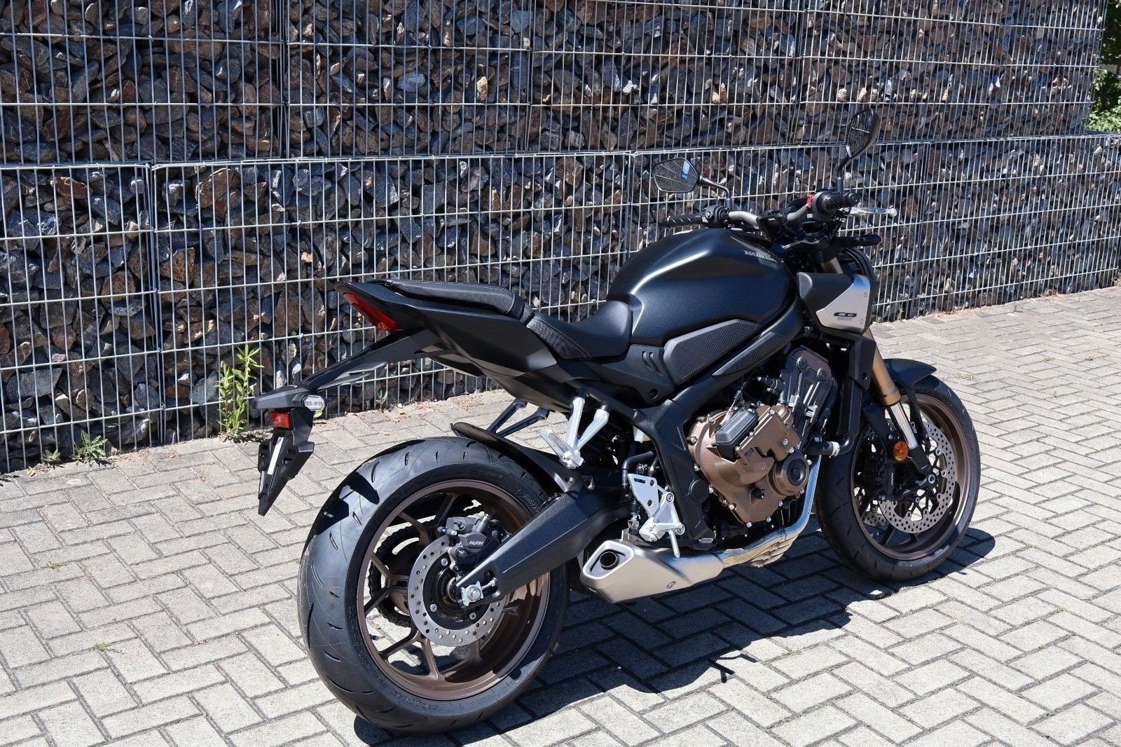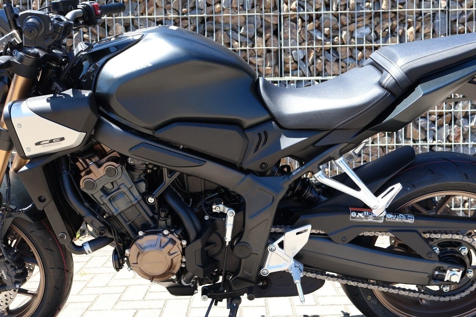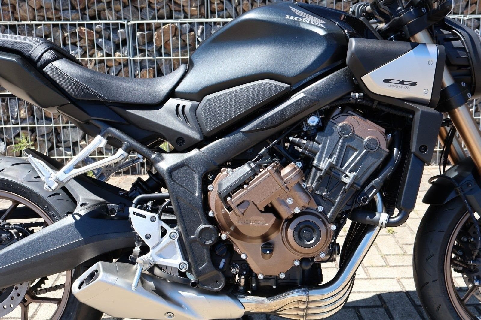 Vierzylindermagie pur. Die aufs Wesentliche reduzierte CB650R überzeugt im Stadtverkehr und auf der Landstraße durch herausragende Beschleunigung, agile Leichtigkeit und das unverwechselbare, von der CB1000R inspirierte Neo Sports Café-Design. Hinzu kommen erstklassige Technik und das herausragende als Sonderausstattung erhältliche neue Honda E-Clutch.