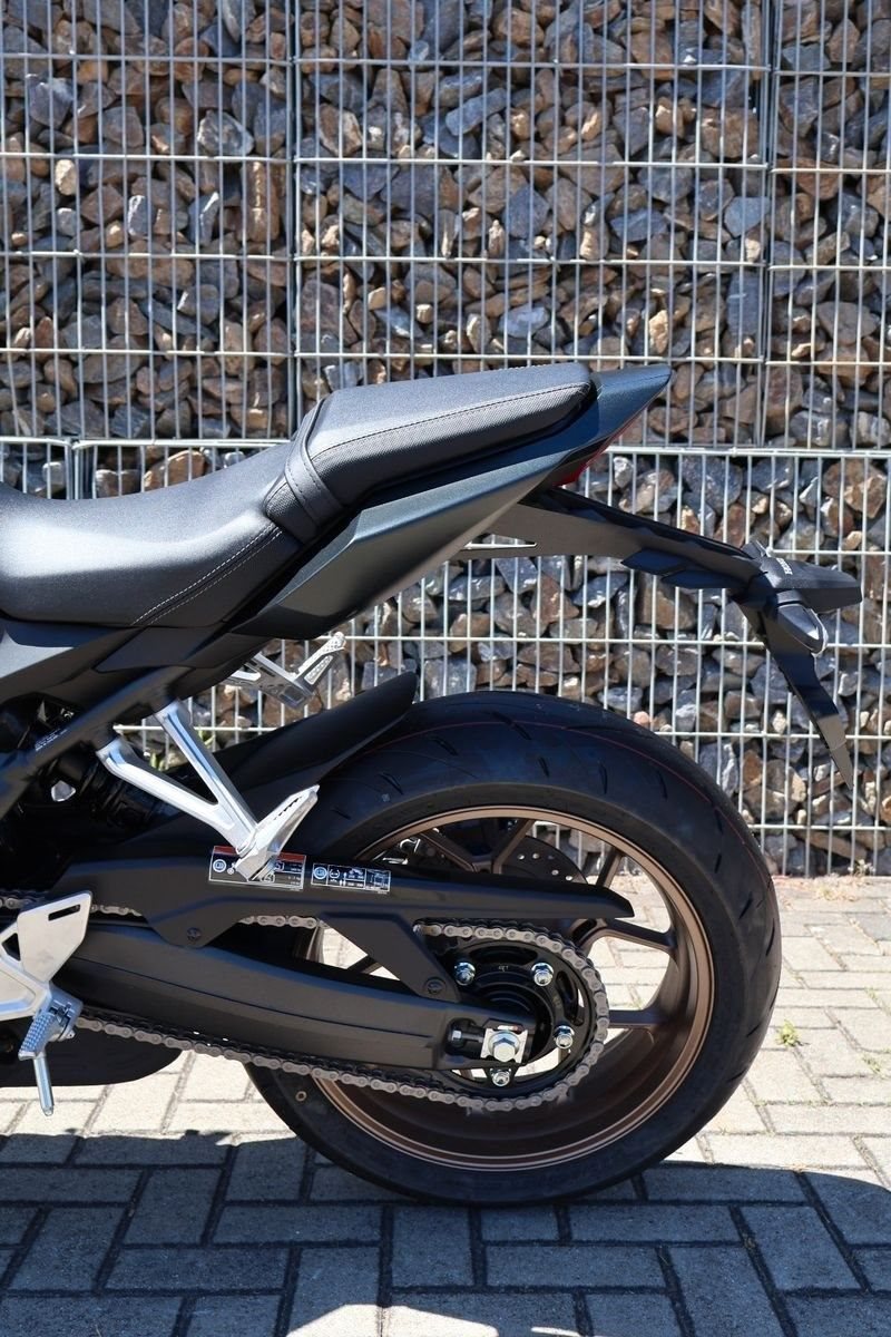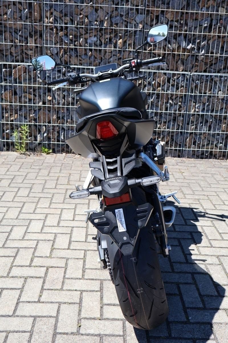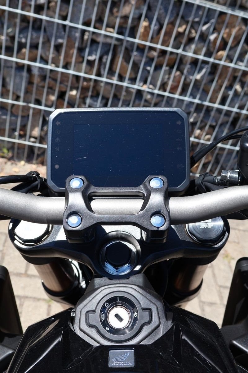 Du hast es in der Hand. Der DOHC-Vierzylinder-Reihenmotor leistet in der Spitze 70 kW (95,2 PS) - der rote Bereich beginnt bei 12.000 U/min - und bietet ein Drehmoment von 63 Nm. Honda Händler können das Bike für alle mit A2-Führerschein auf 35 kW drosseln und die Drosselung entfernen, sobald ein A-Führerschein vorgelegt werden kann. Da Leistung Kontrolle braucht, verhindert die Anti-Hopping-Kupplung das Blockieren des Hinterrads bei starkem Bremsen und Herunterschalten. Das Notbremssignal (ESS) wird bei Vollbremsungen aktiviert und sorgt so für bessere Sichtbarkeit auf der Straße.