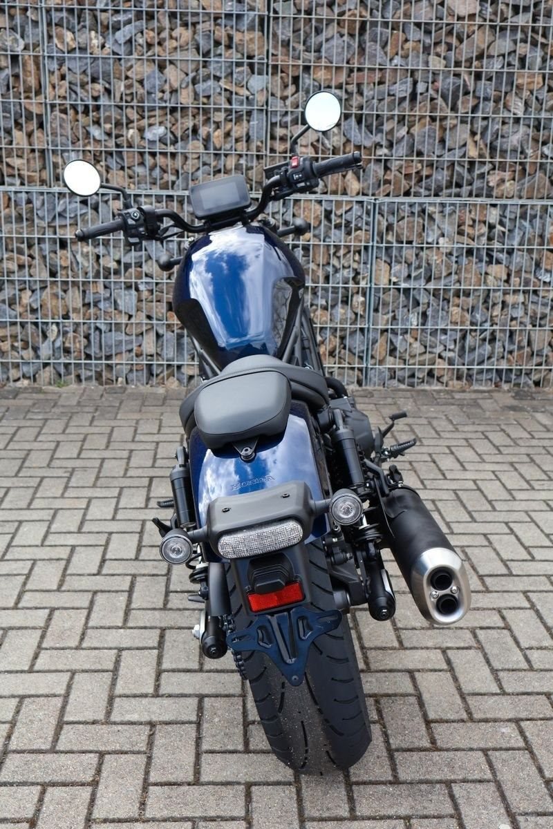 Die Sitzhöhe von 710 mm gewährleistet perfektes Handling bei niedrigen Geschwindigkeiten und eine gute Erreichbarkeit des Bodens. Und die Details sind einfach unschlagbar. Der Kraftstofftank fasst 13,6 Liter und sitzt ohne Flansch über dem kraftvollen Motor. Die vorderen und hinteren Schutzbleche sind aus 1 mm dickem Stahl gefertigt und auf Aluminiumdruckguss montiert. Der runde Scheinwerfer ist ein echter Motorradklassiker und zugleich modern: Die vier hellen LED-Leuchten tragen zum unverwechselbaren Styling der Rebel ebenso bei wie die LED-Blinker und das Rücklicht mit Klarlinse. Dank ihrer fein abgestimmten Proportionen sieht die CMX1100 auch mit Fahrer gut aus - das ist schließlich wichtig.